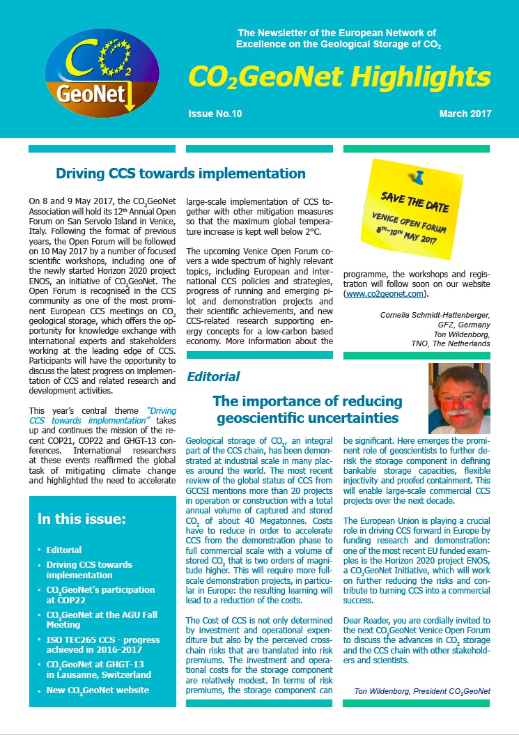 CO2GeoNet is acknowledged as the European scientific authority dealing with all aspects of geological storage of CO2. Through its activities of collaborative research, information and communication, training and scientific advice, CO2GeoNet is durably engaged in enabling the safe and efficient deployment of the CO2 Capture and Storage (CCS) technology in order to mitigate climate change and ocean acidification.