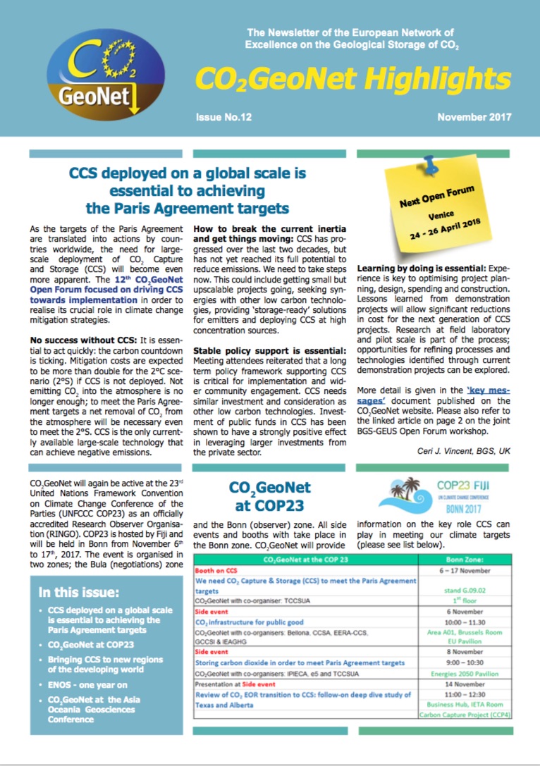 CO2GeoNet is contributing, in collaboration with other international organisations, to side-events and a booth at COP23.