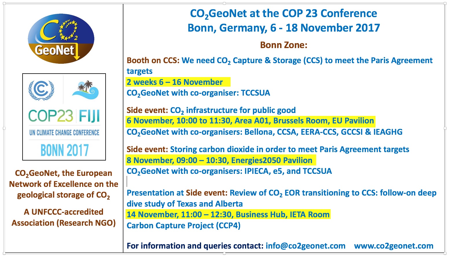 CO2GeoNet is contributing, in collaboration with other international organisations, to side-events and a booth at COP23.